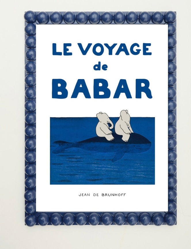 Do clássico de Jean de Brunhoff, um recorte sereno e encantador da jornada de Babar e Celeste sobre o dorso de uma baleia azul-marinho. Uma imagem que convida ao devaneio — sobre viagens, companheirismo e o mar profundo da imaginação.