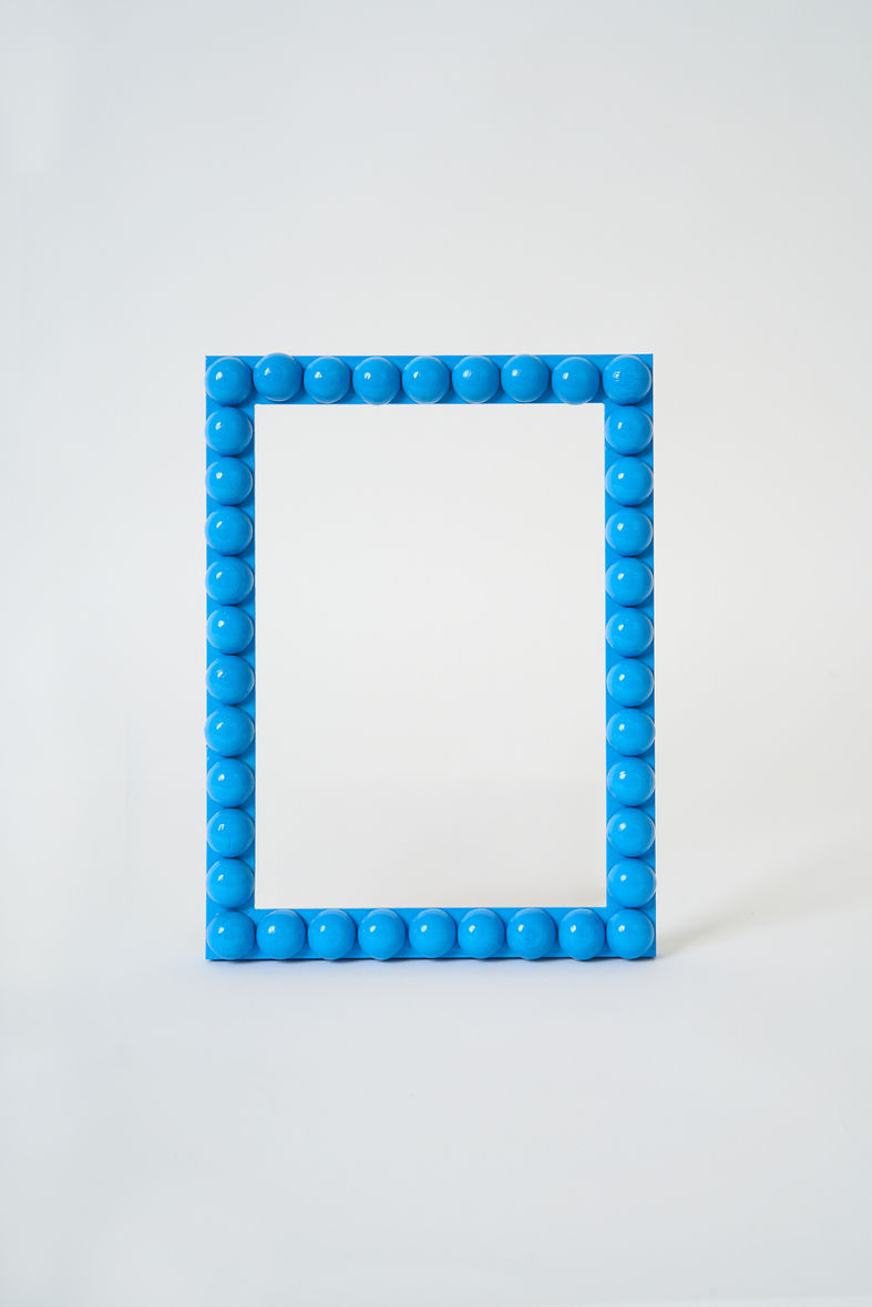 Porta-retrato com com vidro e montado com bolinhas uma a uma, a moldura Dotz é uma celebração do gesto manual em forma de cor. Pintada com variações de tintas acrílicas importadas, essa moldura em madeira é trabalhada artesanalmente e com acabamento em laca. Dotz é um contorno com personalidade para obras, fotos e memórias que pedem destaque. Tamanho: 15cm x 21cm
